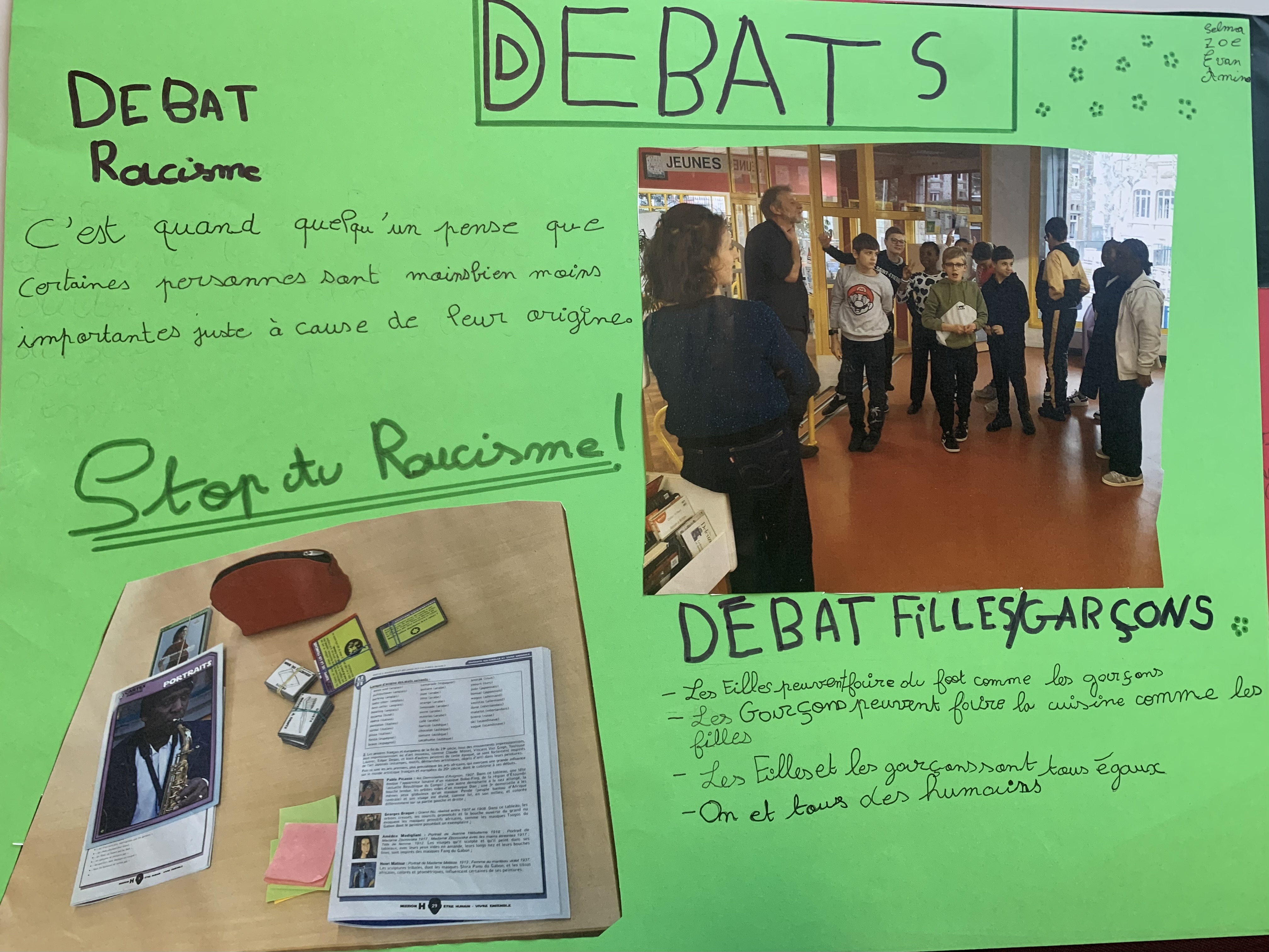 Accompagnés par Mesdames André et Boyer dans les locaux de la médiathèque du Chambon-Feugerolles, les élèves ont d’abord pris part à un temps de réflexion et d’échanges visant à comprendre comment se construisent les stéréotypes dans la société. À travers des activités participatives, ils ont été amenés à identifier ces représentations parfois inconscientes, à réfléchir aux moyens de les déconstruire et à développer un regard plus critique et éclairé sur ces mécanismes.